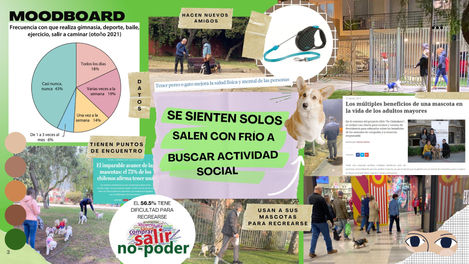 Se realizó una propuesta especulativa con la marca Purina (para perros) teniendo como oportunidad: Los adultos mayores están formando comunidades de personas con perros para combatir la soledad.